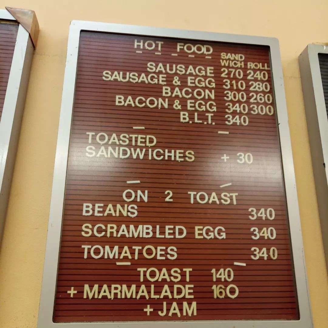 - Hot Food: A selection of cooked items including sausage, bacon, and combinations such as sausage & egg and bacon & egg, providing hearty options for morning or midday meals.